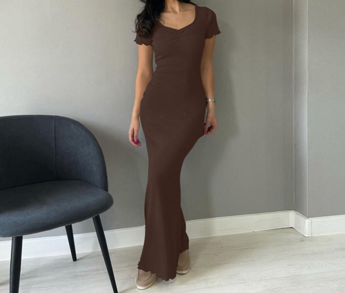 (Real Image)2024 Styles Women Summer Fashion Elegant U-Neck Short Sleeve Maxi DressSKU: #CF88222-4