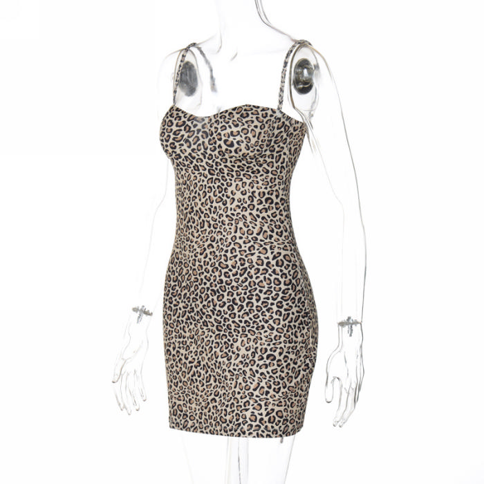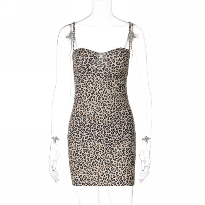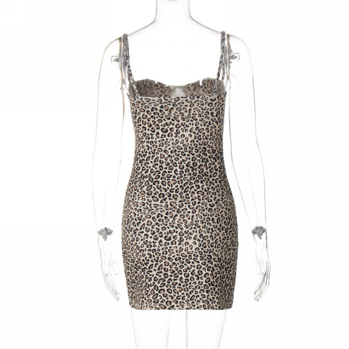 (Real Image)2024 Styles Women Summer Fashion Floral Print Sexy Backless Leopard Print Bodycon Cami DressSKU: #CF88212-1