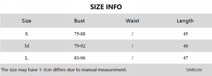 | Size | Bust | Waist | Hips |