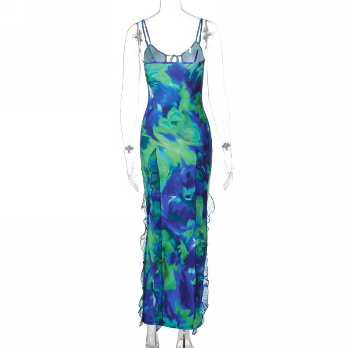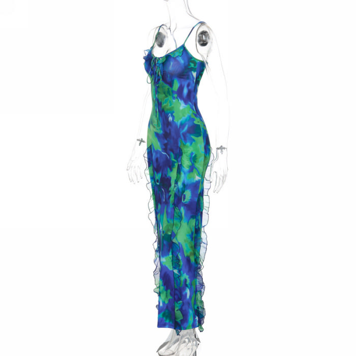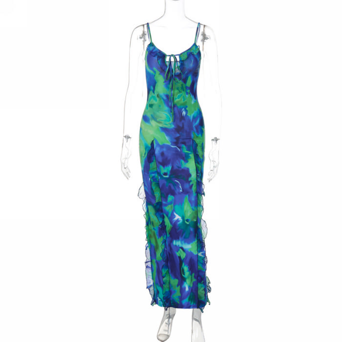 (Real Image)2024 Styles Women Summer Fashion Floral Sexy Lace Trimmed Halter Long DressSKU: #CF88247-1