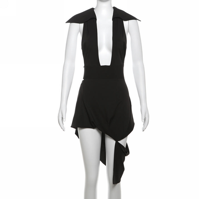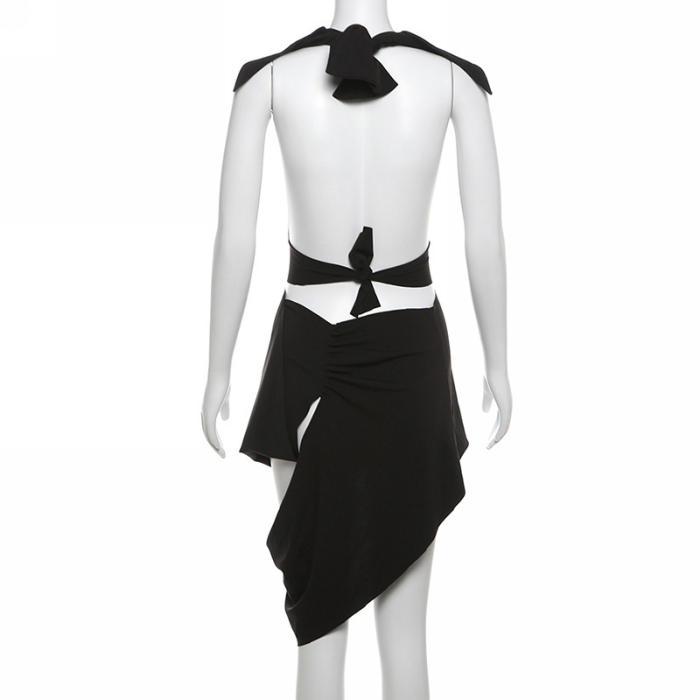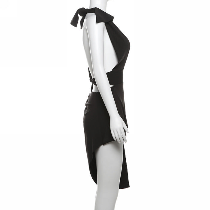 (Real Image)2024 Styles Women Summer Fashion Individuality Collar Halter Tie-Back Sexy Open Back Open-Work DressSKU: #CF83342-1