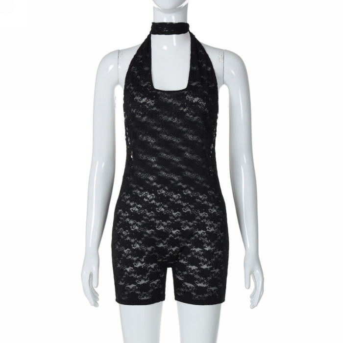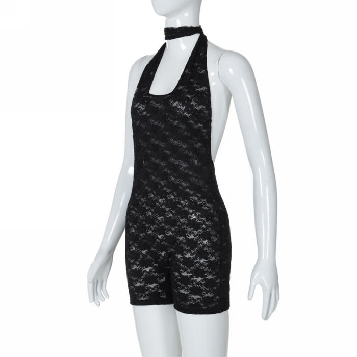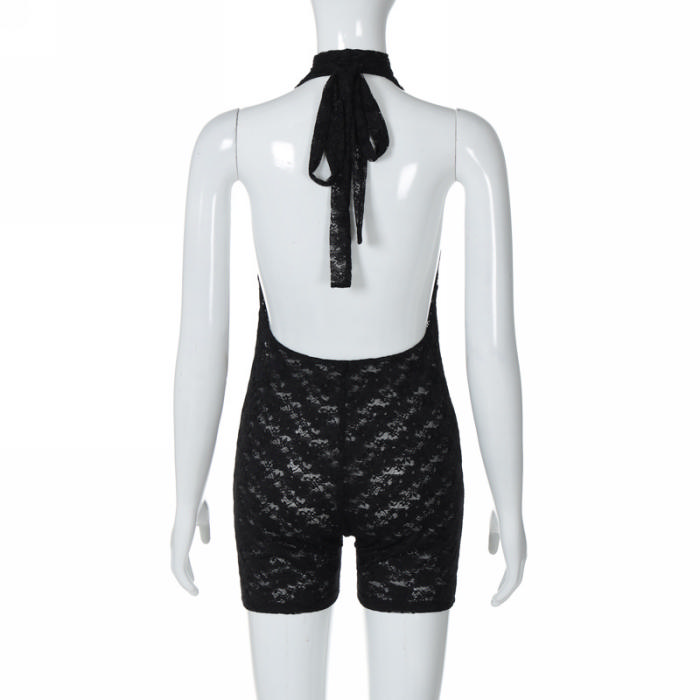 (Real Image)2024 Styles Women Summer Fashion Sexy Backless Lace Halter Sleeveless PlaysuitSKU: #CF88229-1