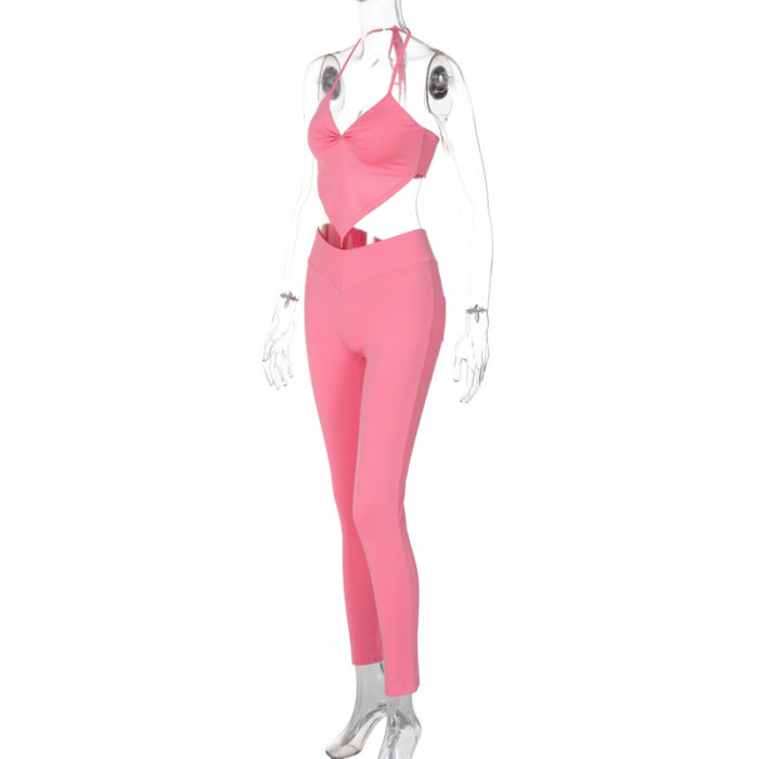 (Real Image)2024 Styles Women Summer Fashion Sexy Backless Lace-Up Tube Top and Skinny Pants SetSKU: #CF88220-1