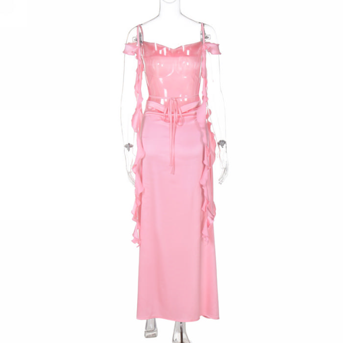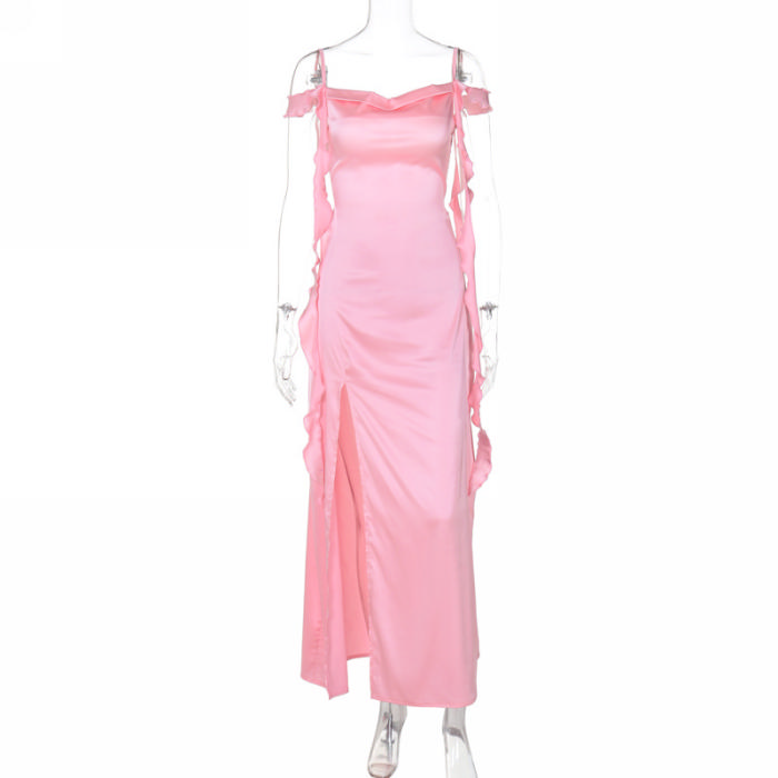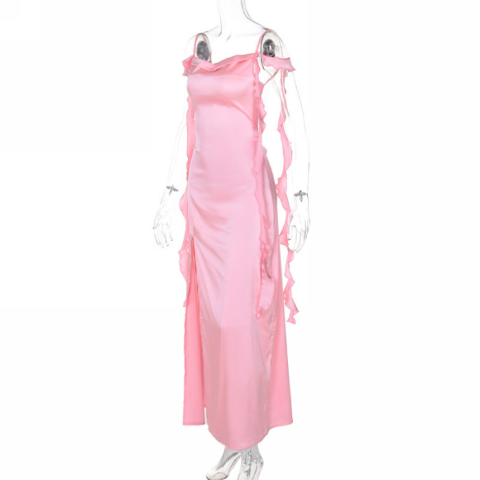 (Real Image)2024 Styles Women Summer Fashion Sexy Backless Slit Ruched Maxi DressSKU: #CF88219-1