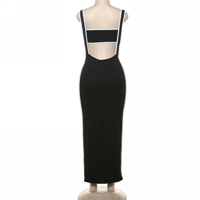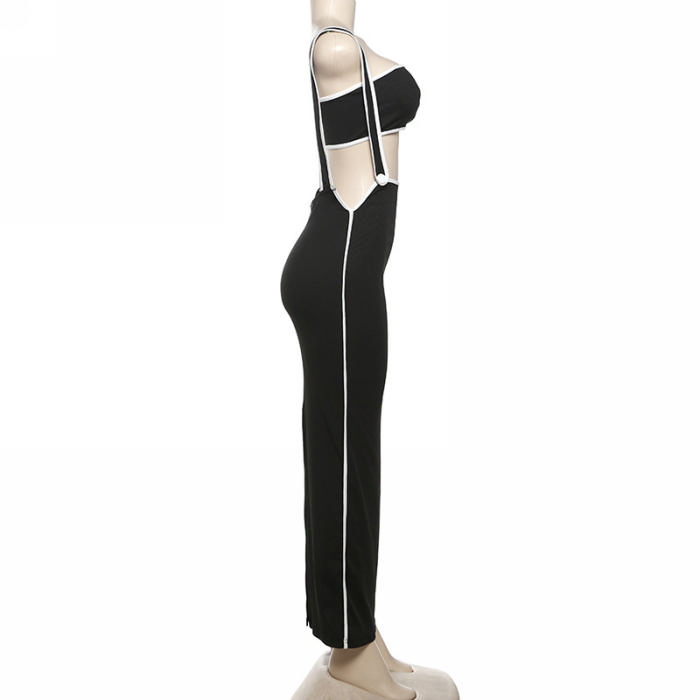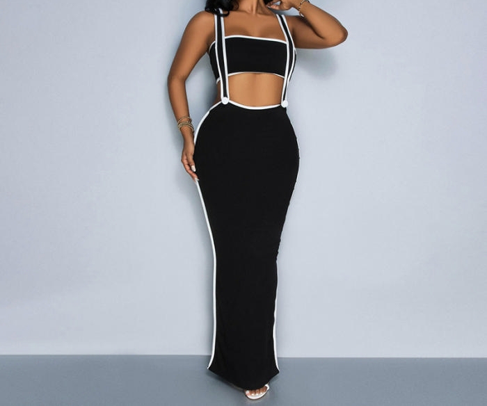 (Real Image)2024 Styles Women Summer Fashion Sexy Halter Crop Top Open-Work Slim Maxi DressSKU: #CF83311-1