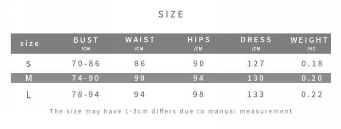 | Size | Bust | Waist | Hips |