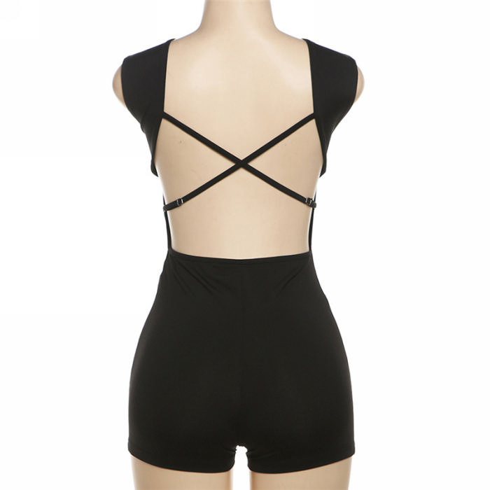 (Real Image)2024 Styles Women Summer Fashion Sexy Low-Cut Backless Slimming Butt-Lift PlaysuitsSKU: #CF77802-1