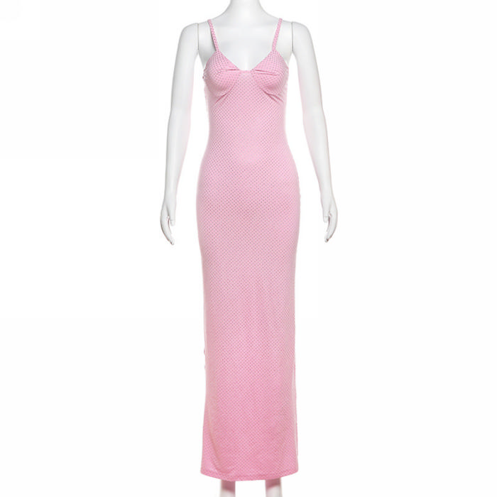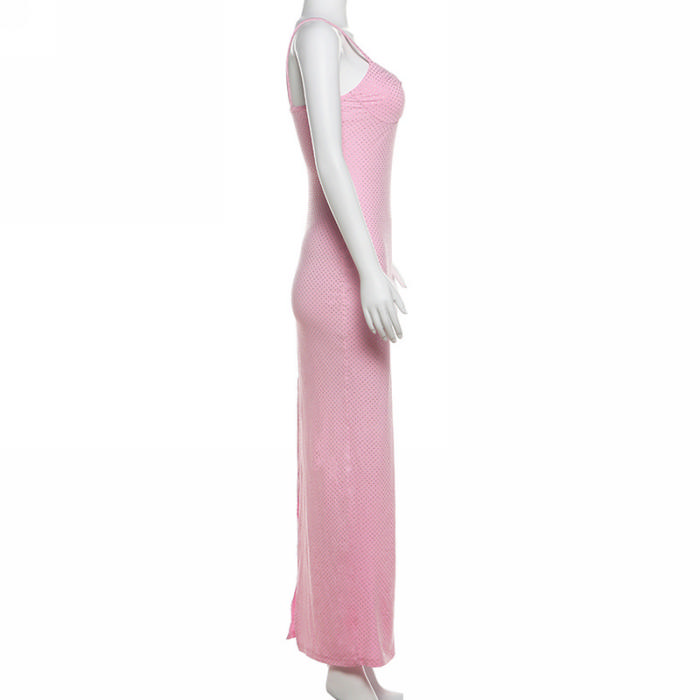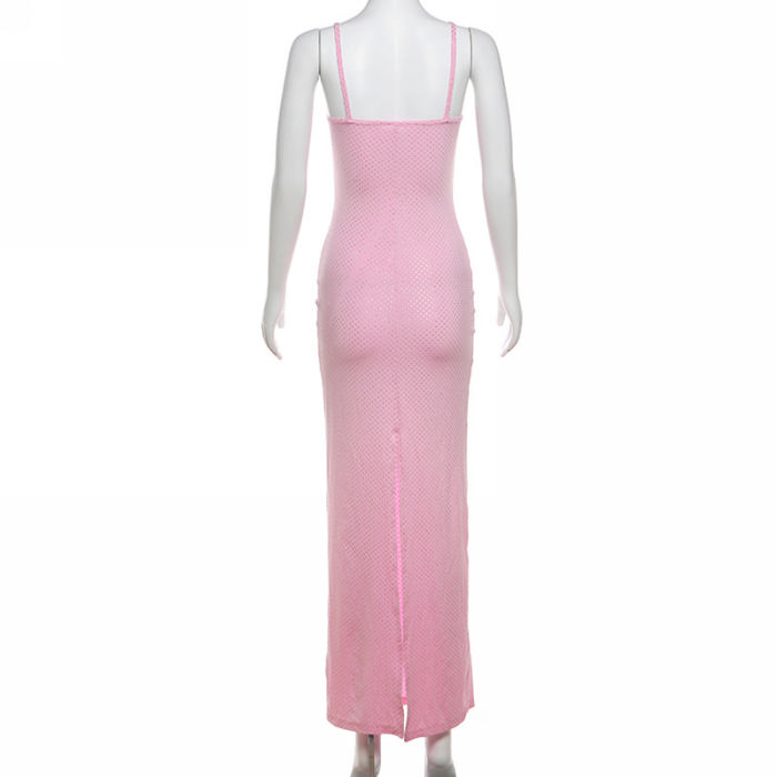 (Real Image)2024 Styles Women Summer Fashion Sexy Low-Cut Halter Open Back Slim Maxi DressSKU: #CF83338-1