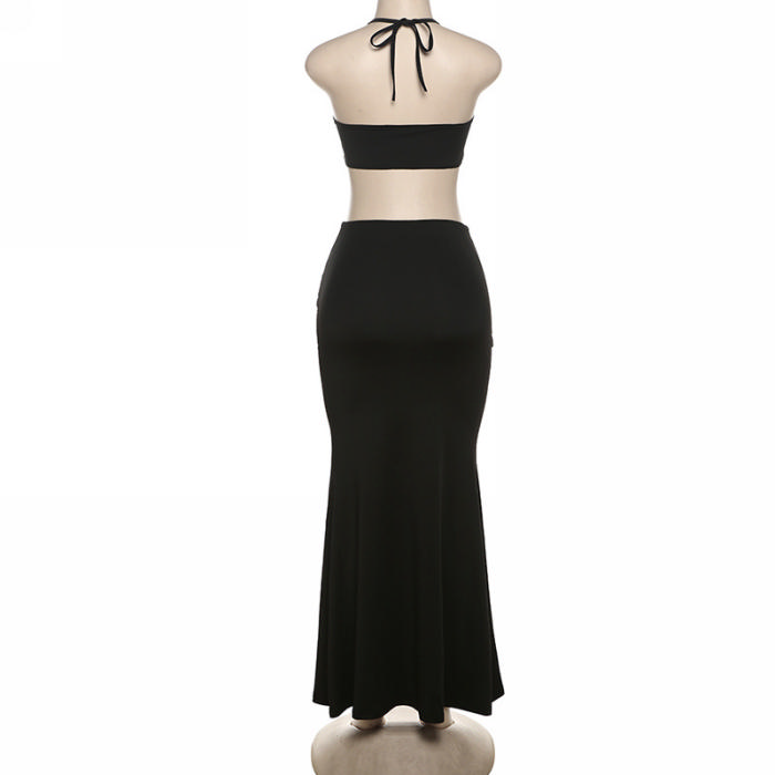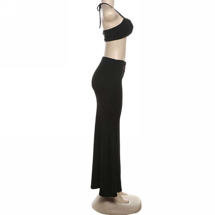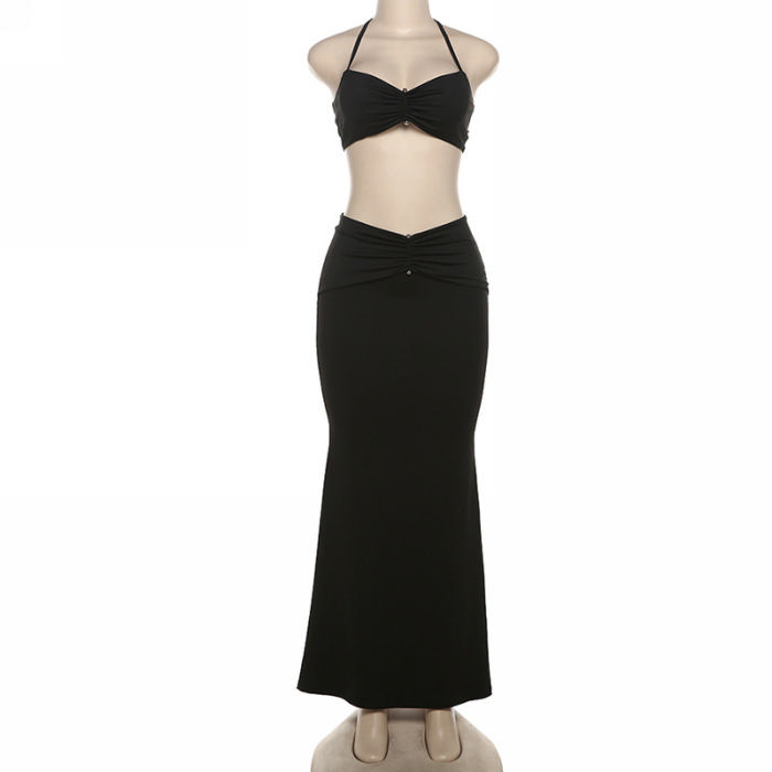 (Real Image)2024 Styles Women Summer Fashion Sexy Open Back Halter Pleated Slimming Maxi Dress SetSKU: #CF83331-1