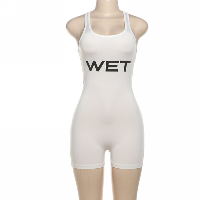 (Real Image)2024 Styles Women Summer Fashion Sexy Open Back Solid Color Halter Sporty Bodycon PlaysuitSKU: #CF83327-1