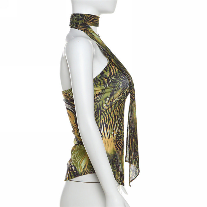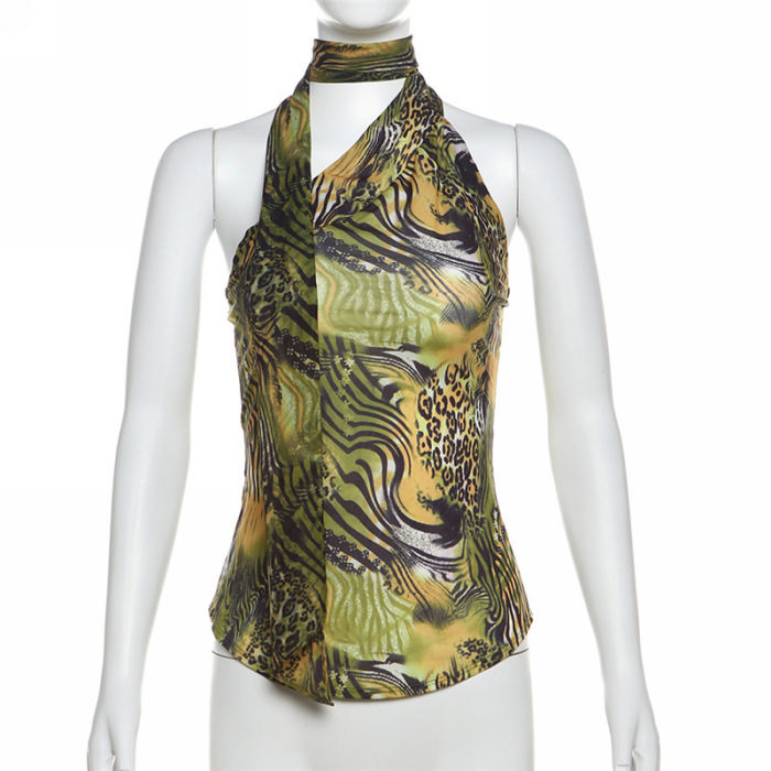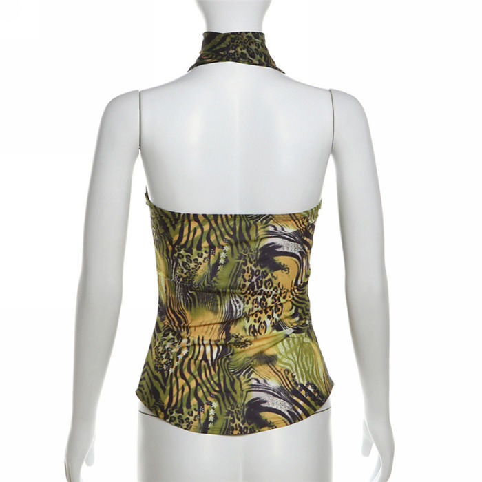 (Real Image)2024 Styles Women Summer Fashion Sexy Slimming Halter Neck Backless Printed TopSKU: #CF77786-1