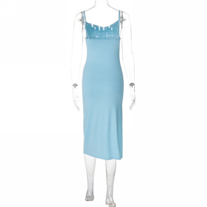 (Real Image)2024 Styles Women Summer Fashion Sexy V-Neck Split Fitted Halter Midi DressSKU: #CF88253-1