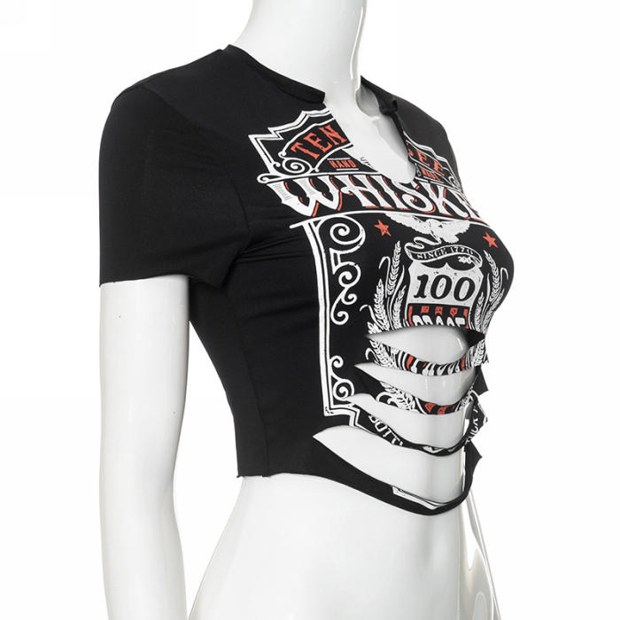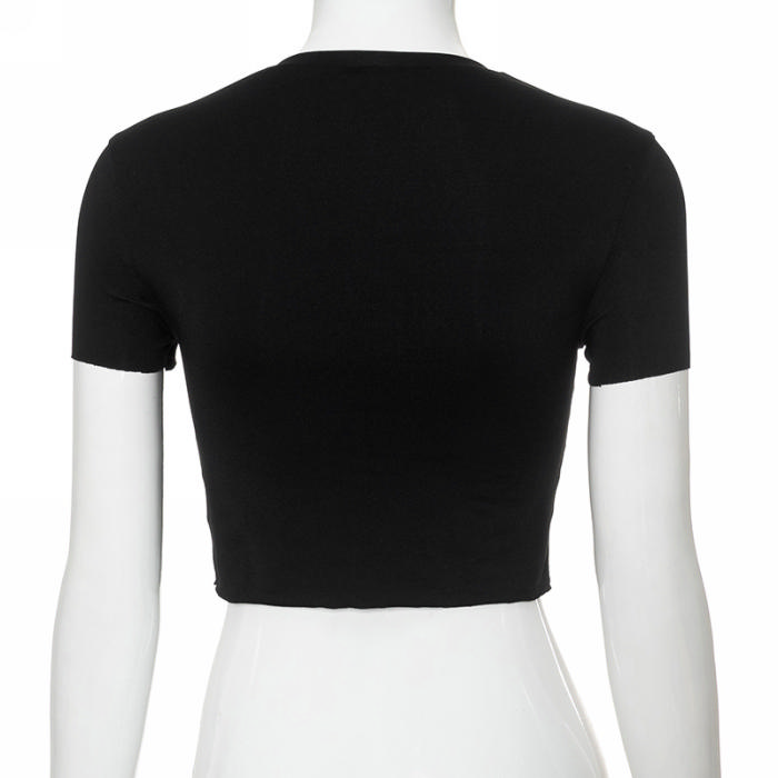 (Real Image)2024 Styles Women Summer Fashion Short Sleeve U-Neck Floral Burnout Lace Crop Top TeeSKU: #CF47921-1
