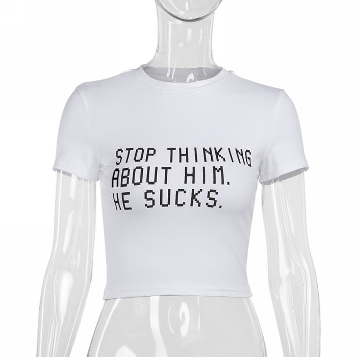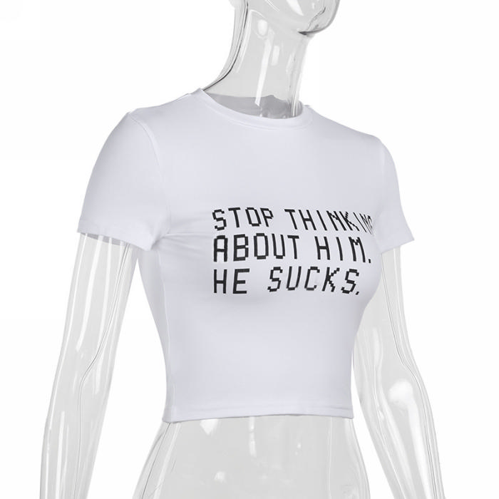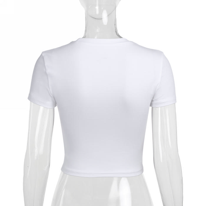 (Real Image)2024 Styles Women Summer Fashion Slim Crop Top with Versatile Printed Short Sleeve TopSKU: #XF92888-1