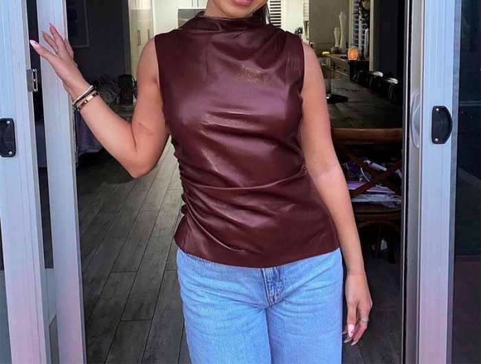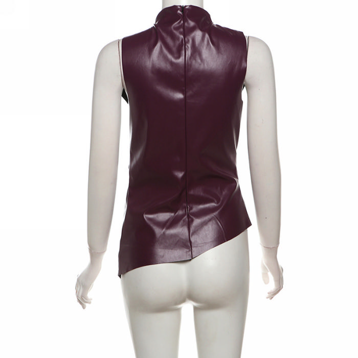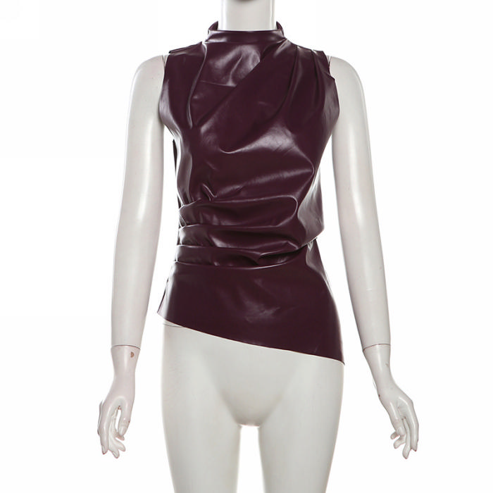 (Real Image)2024 Styles Women Summer Fashion Slim-Fit Irregular Pleated PU Vest TopSKU: #CF77805-1