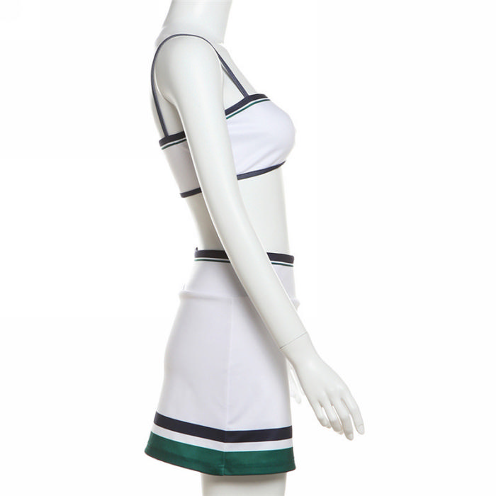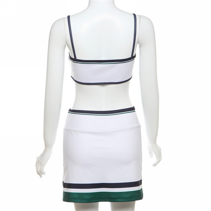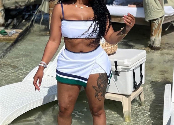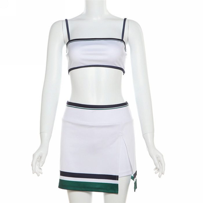(Real Image)2024 Styles Women Summer Fashion Spicy Girl Strapless Bandeau High-Waist Slit Hip-Wrapped Mini Skirt SetSKU: #CF77804-1
