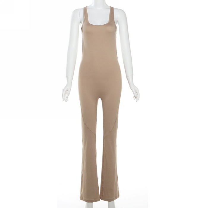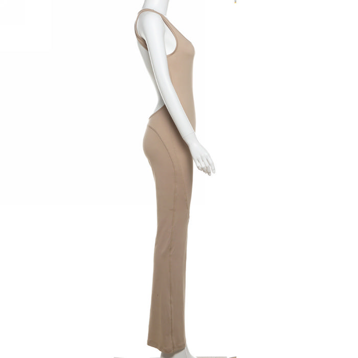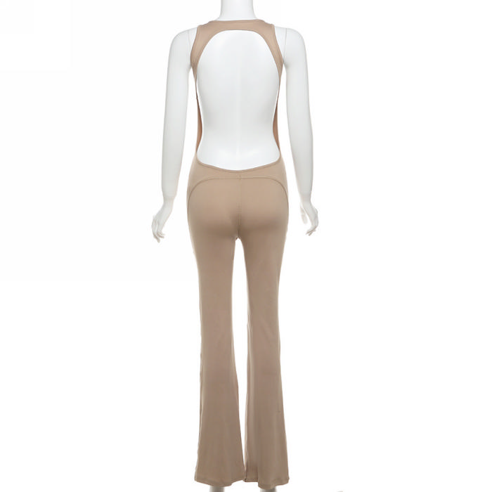 (Real Image)2024 Styles Women Summer Fashion Strap Sexy Low-Cut Backless Slimming Bodycon Flared JumpsuitSKU: #CF77818-1