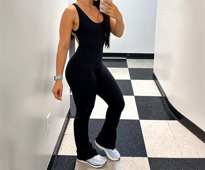 (Real Image)2024 Styles Women Summer Fashion Strap Sexy Low-Cut Backless Slimming Bodycon Flared JumpsuitSKU: #CF77818-2