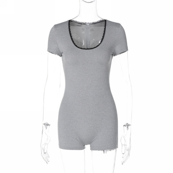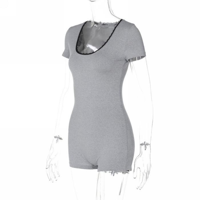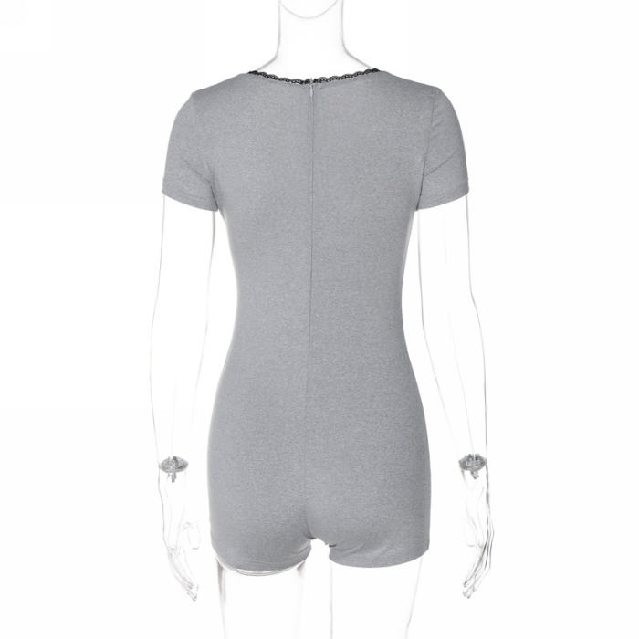 (Real Image)2024 Styles Women Summer Fashion Streetwear Back Zipper Bodycon Short Sleeve PlaysuitSKU: #CF88217-1