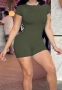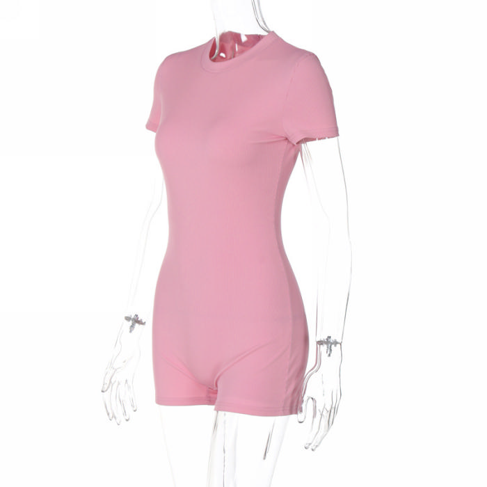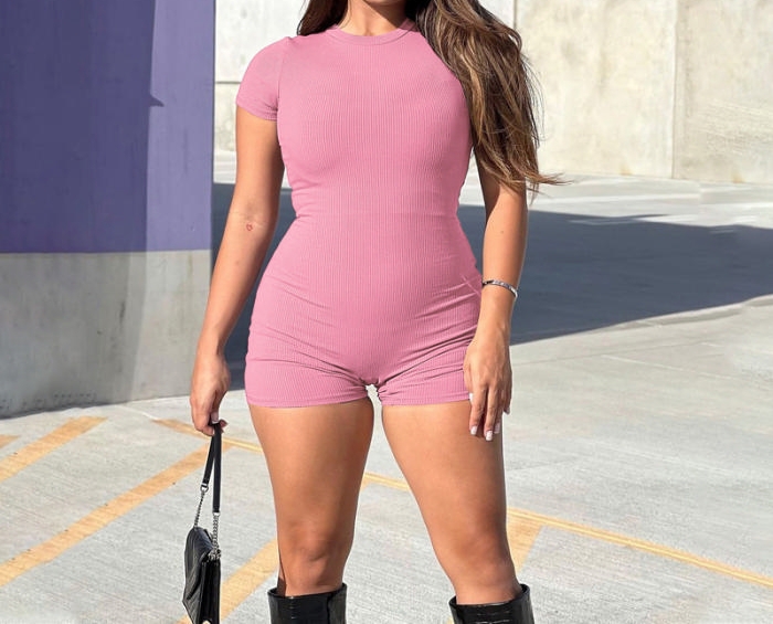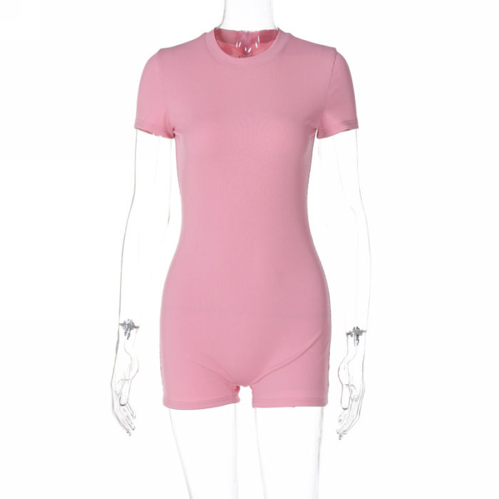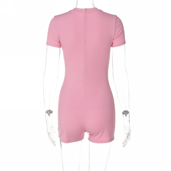 (Real Image)2024 Styles Women Summer Fashion Streetwear Zipper Bodycon Round Neck Short Sleeve Solid Color JumpsuitSKU: #CF88203-1