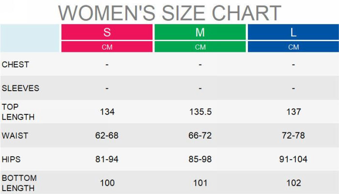 | Size | Bust | Waist | Hips |