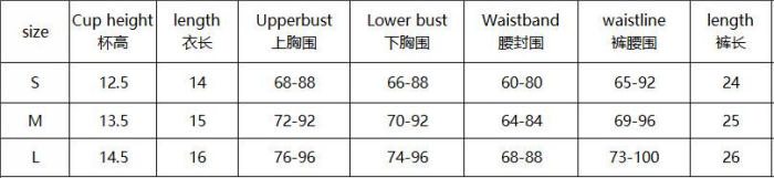 | Size | Bust | Waist | Hips |
