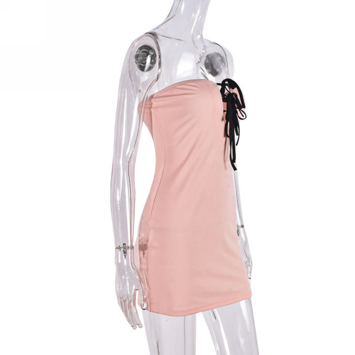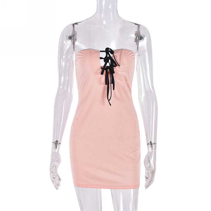 (Real Image)2024 Styles Women Summer Halter Dress with Tie-Back and Color-Blocked CutoutSKU: #CF59828-1