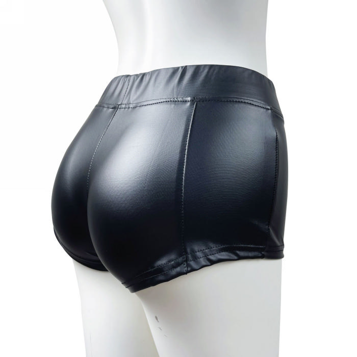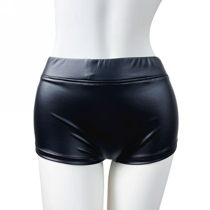 (Real Image)2024 Styles Women Summer High Stretch PU Leather High Waist Casual Low Waist Tight Sexy Hip Wrap Sports ShortsSKU: #XF77061-1