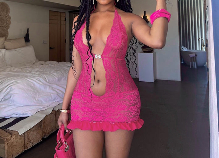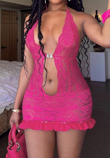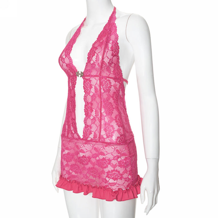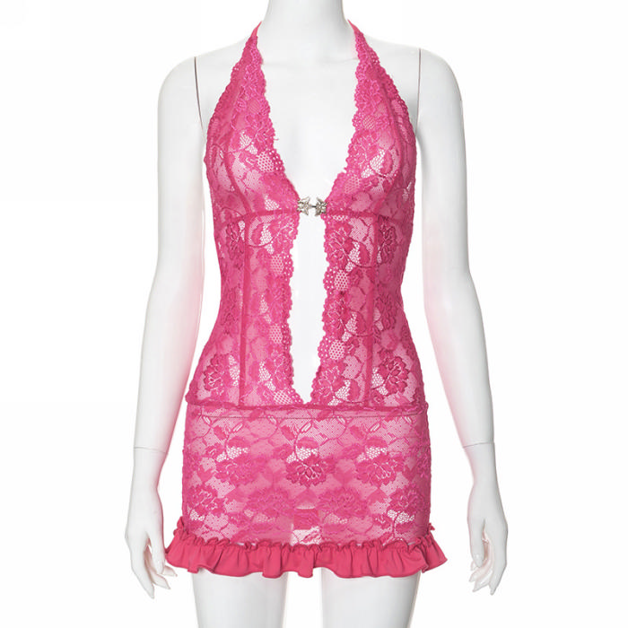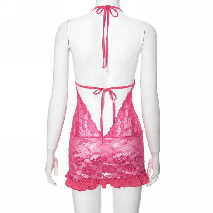 (Real Image)2024 Styles Women Summer Lace Spliced Halter Backless Tie-Up Sexy Hollow Out Maxi DressSKU: #CF47919-1
