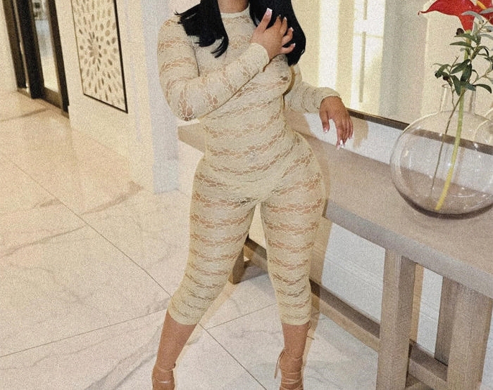 (Real Image)2024 Styles Women Summer Long Sleeve Open Back Jumpsuit with Capri PantsSKU: #CF59823-1