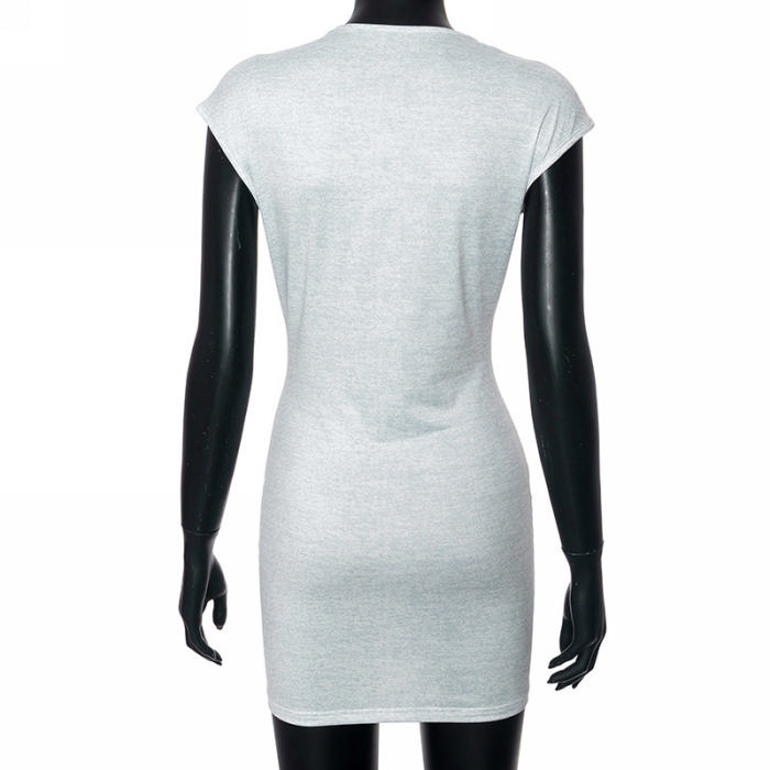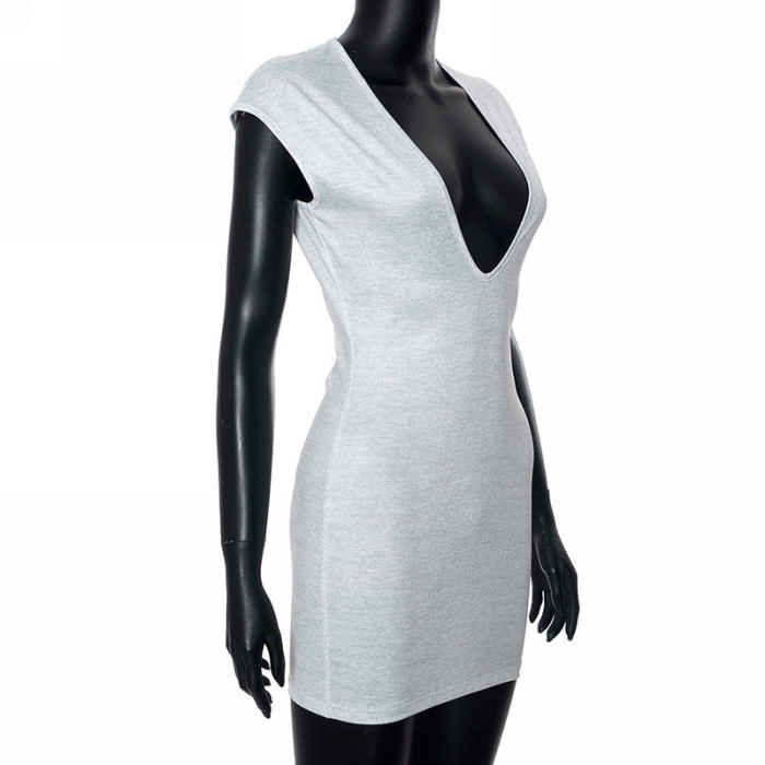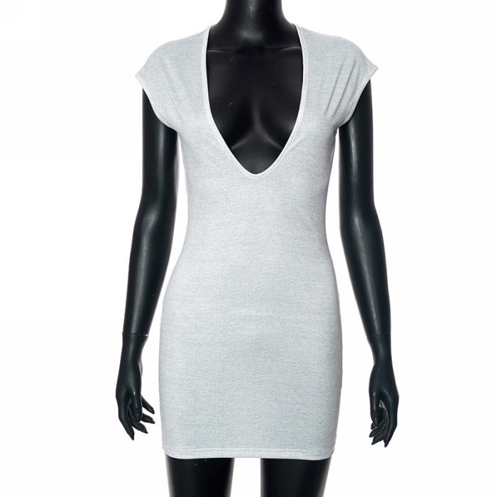 (Real Image)2024 Styles Women Summer Low-Chest Versatile V-Neck Waist-Cinch Bodycon DressSKU: #CF92055-1