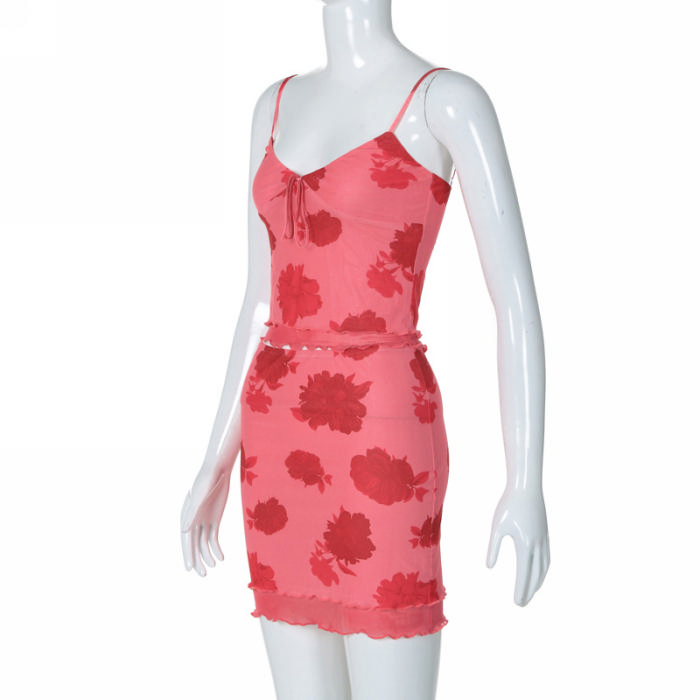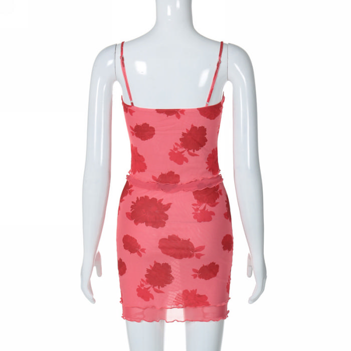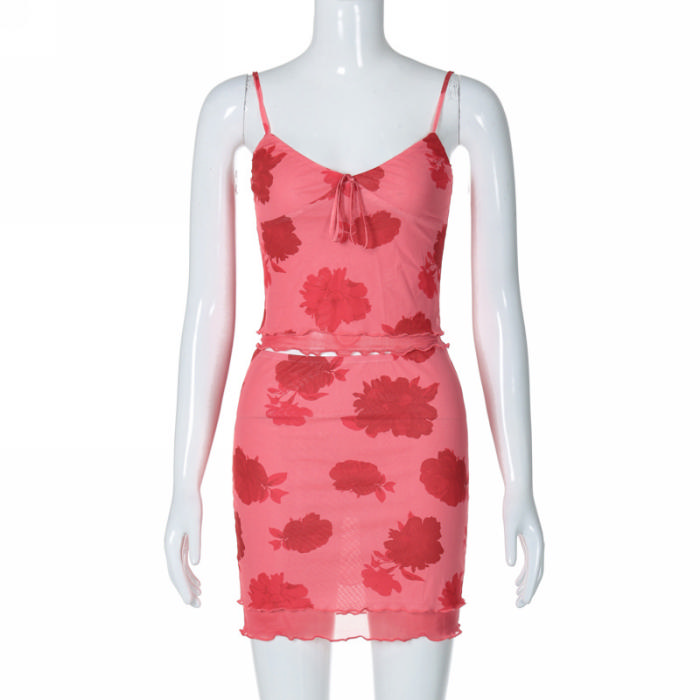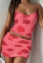 (Real Image)2024 Styles Women Summer Mesh Print Halter Bralette and Shorts Set for Cool and Breathable WearSKU: #CF88248-2