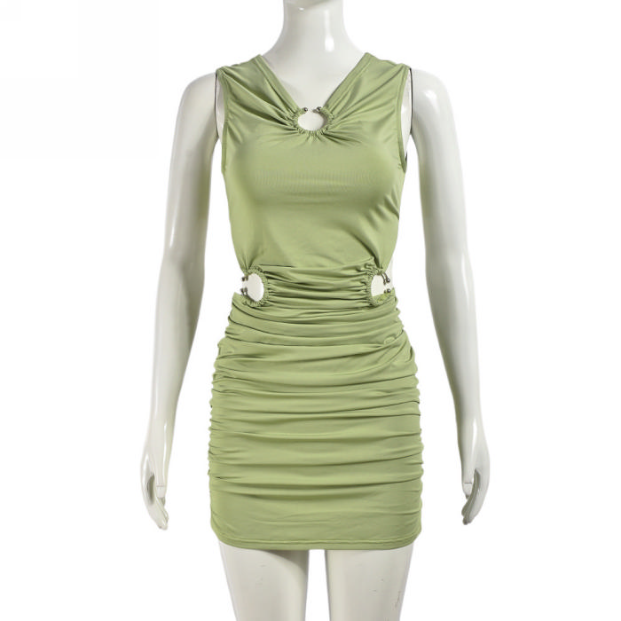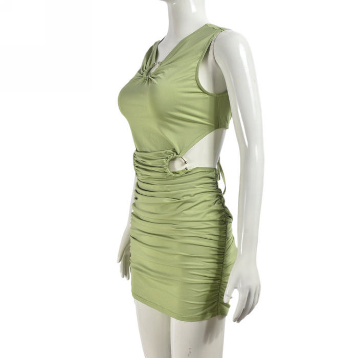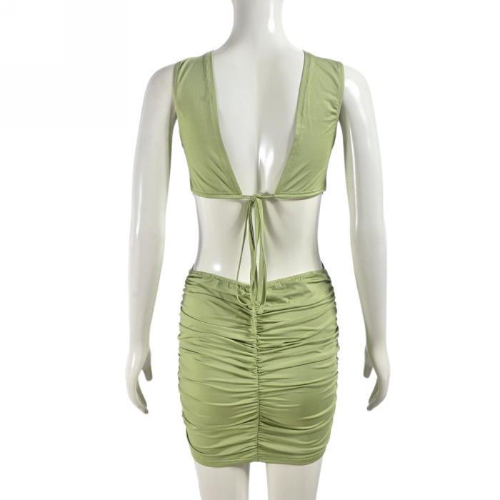 (Real Image)2024 Styles Women Summer Open Back Tied Ruching DressSKU: #CF75062-1