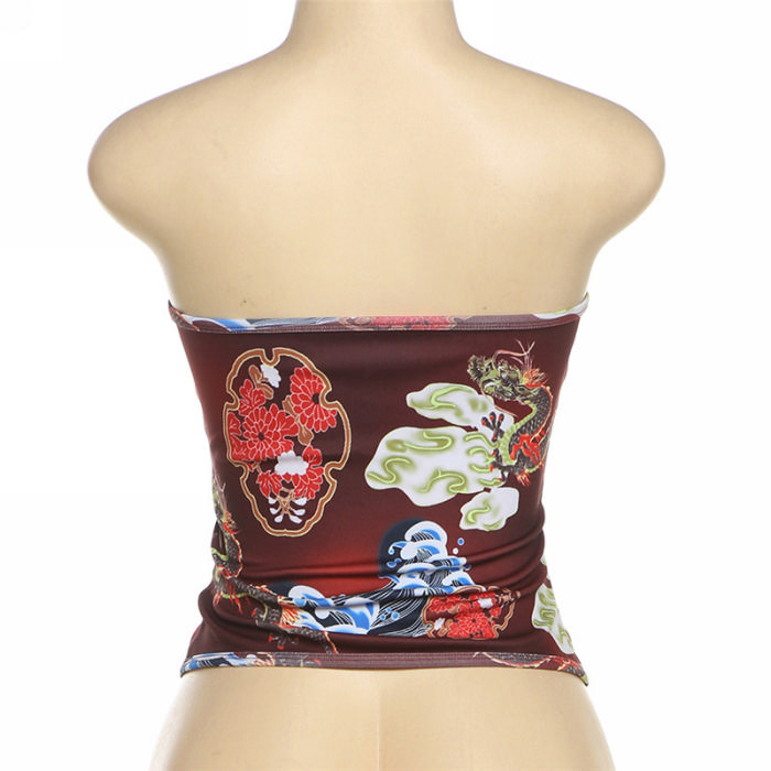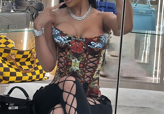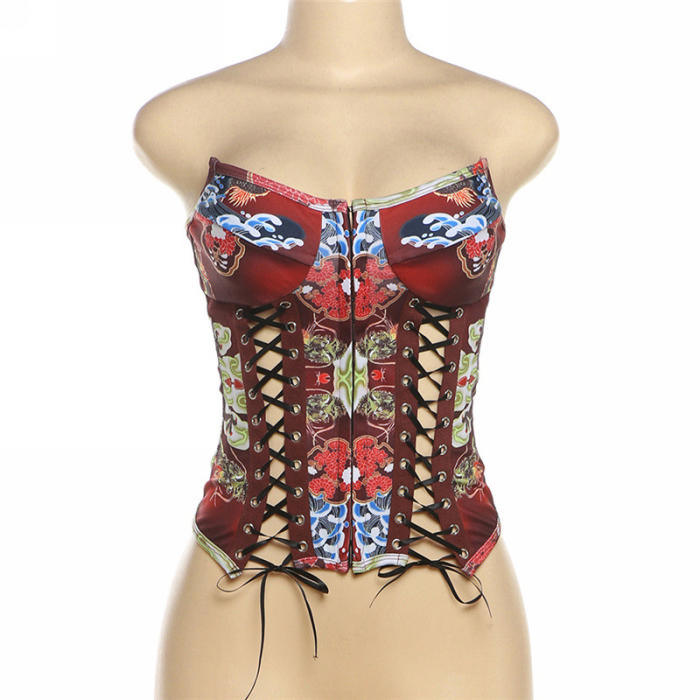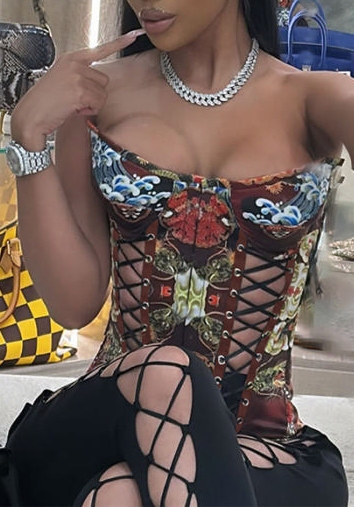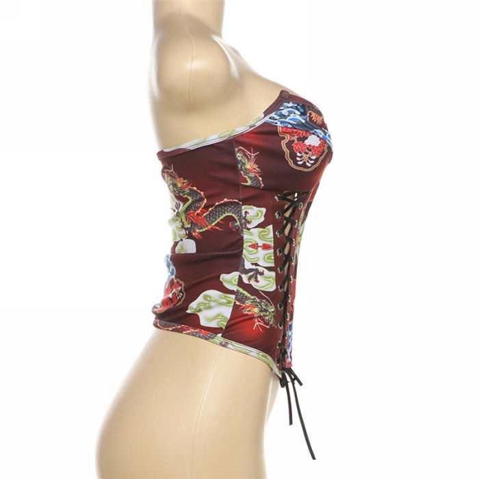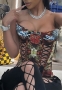 (Real Image)2024 Styles Women Summer Printed Lace-Up Fashionable Sexy Tight Crop TopSKU: #CF77769-1