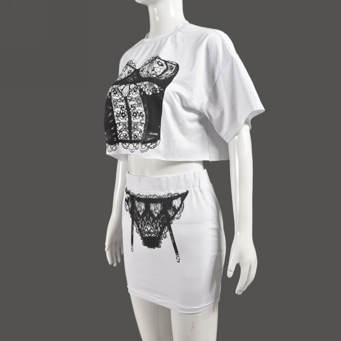 (Real Image)2024 Styles Women Summer Round Neck Printed Crop Top Western Style Skirt SetSKU: #CF75053-1