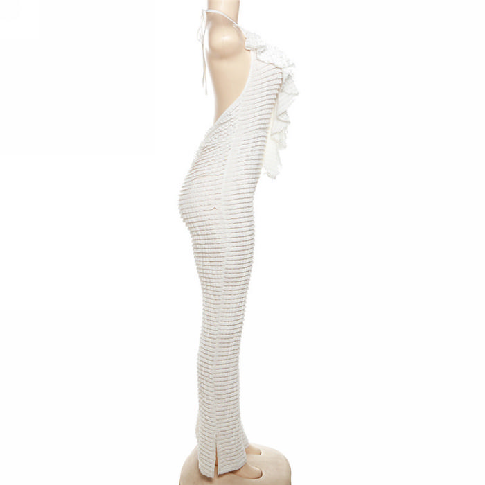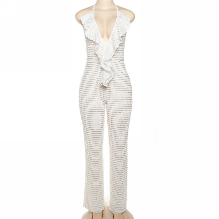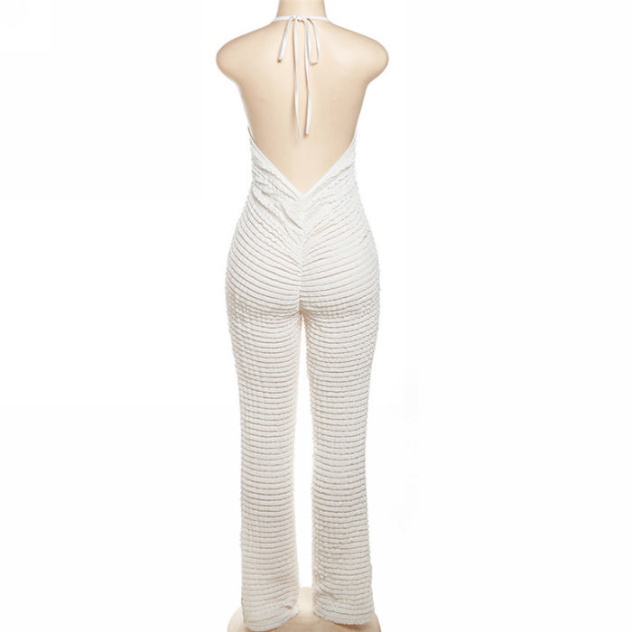 (Real Image)2024 Styles Women Summer Sexy Backless Low-Cut Tight Lace-Up Halter JumpsuitSKU: #CF77795-1