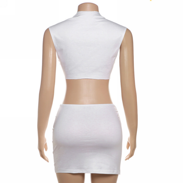 (Real Image)2024 Styles Women Summer Sexy Crop Top Tank with High Waist Slim-Fit Hip Skirt SetSKU: #CF77799-1
