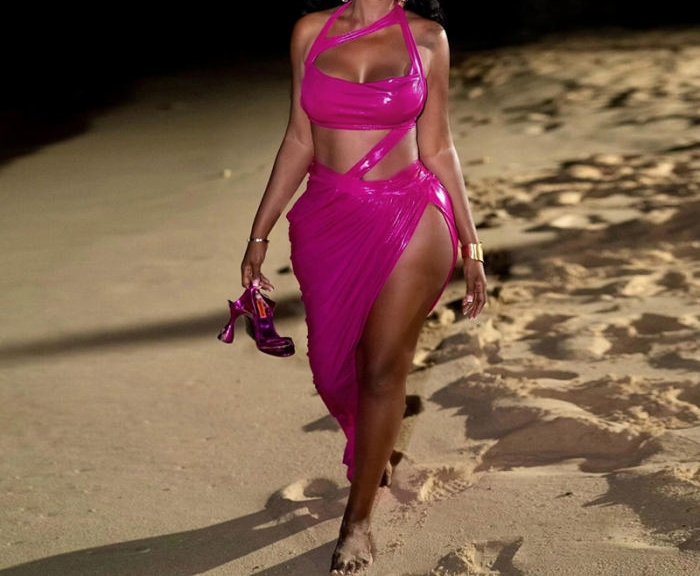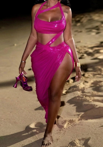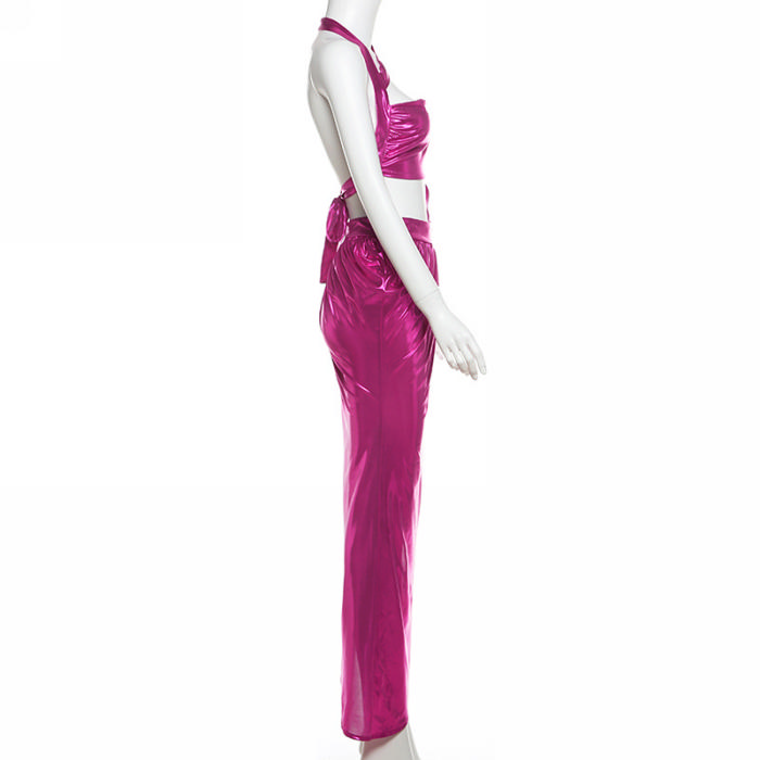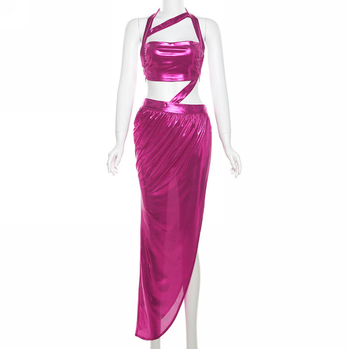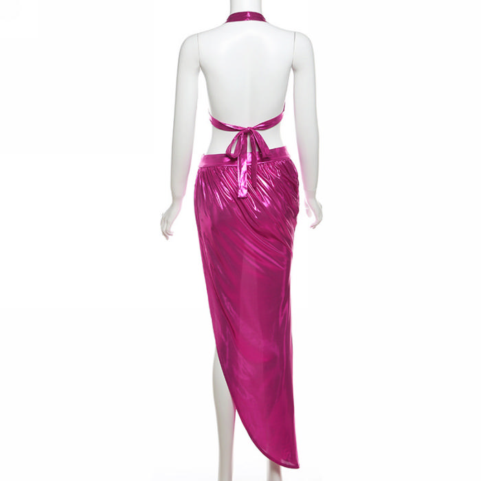 (Real Image)2024 Styles Women Summer Sexy Halter Open Back Tie-Up Open-Work Irregular GownSKU: #CF83341-1