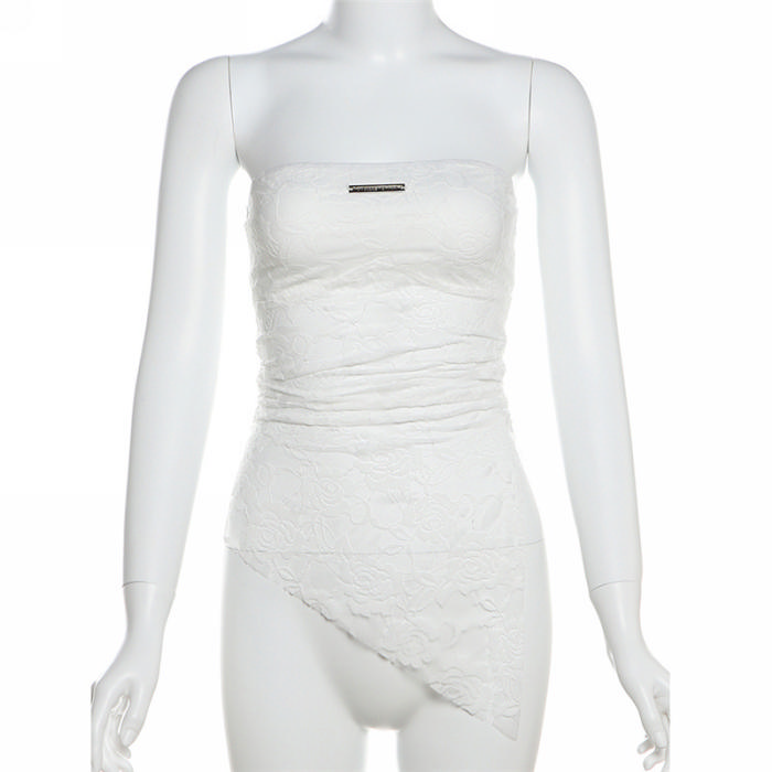 (Real Image)2024 Styles Women Summer Sexy Sheer Lace Halter Irregular Solid Color VestSKU: #CF83344-2