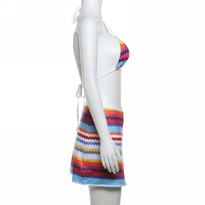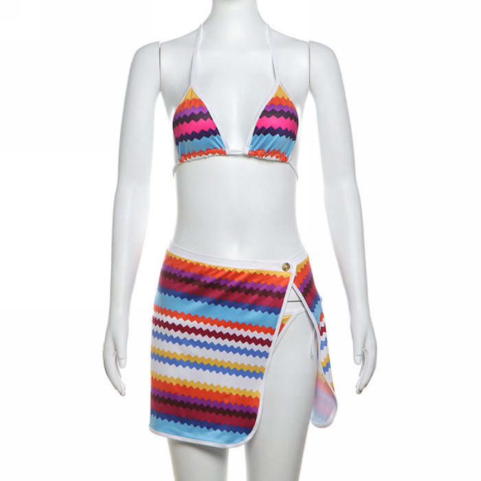 (Real Image)2024 Styles Women Summer Sexy Split Hip-Wrap Skirt Floral Print Lace-Up Bikini SetSKU: #CF77778-1