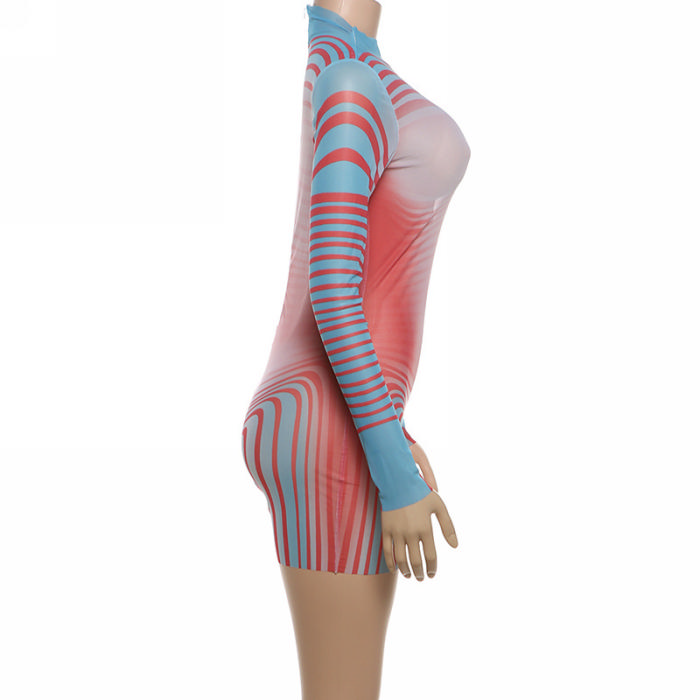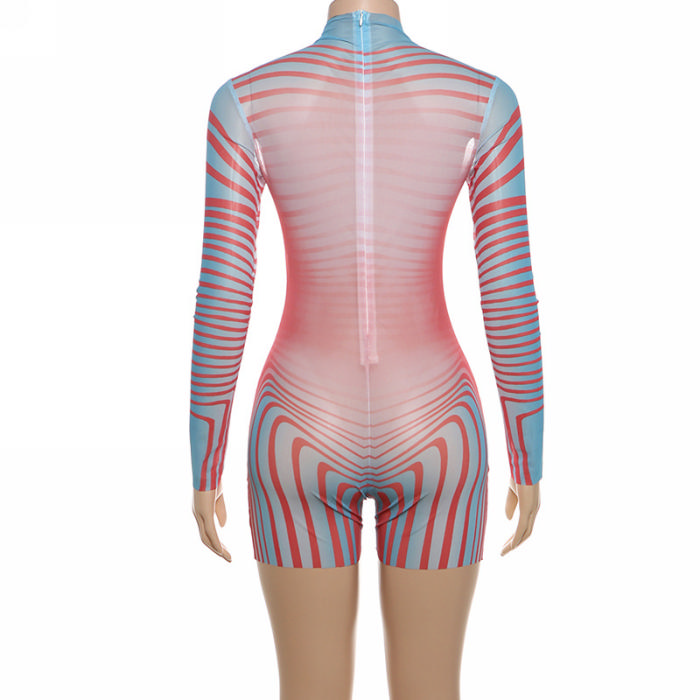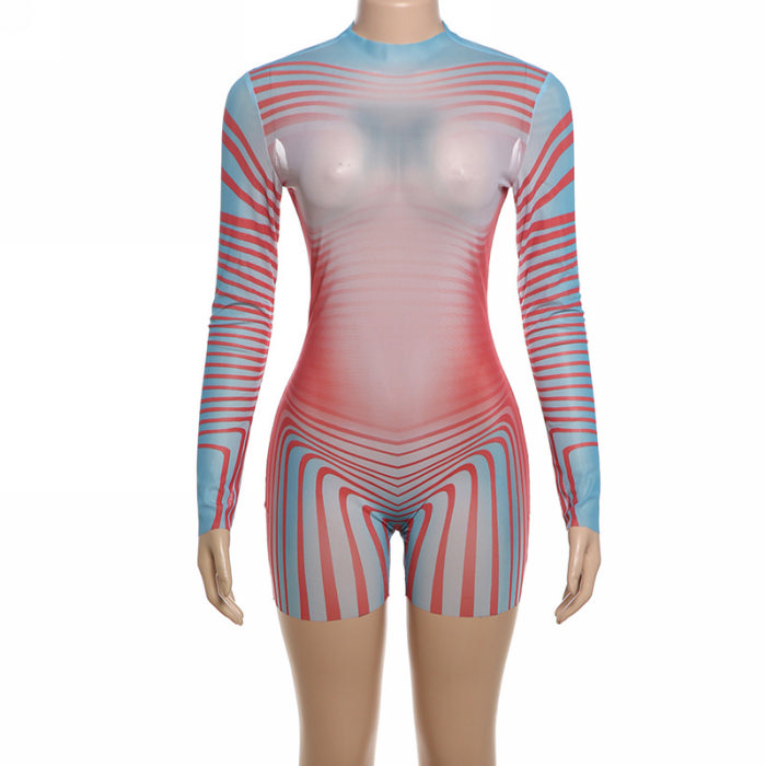 (Real Image)2024 Styles Women Summer Sexy Tight-Fit Printed Long Sleeve High-Waisted Slimming Short RomperSKU: #CF77828-1