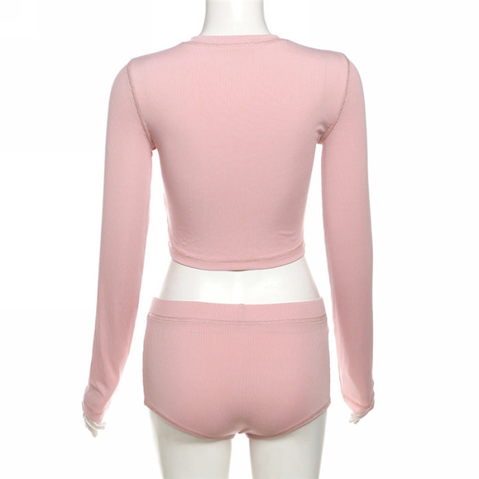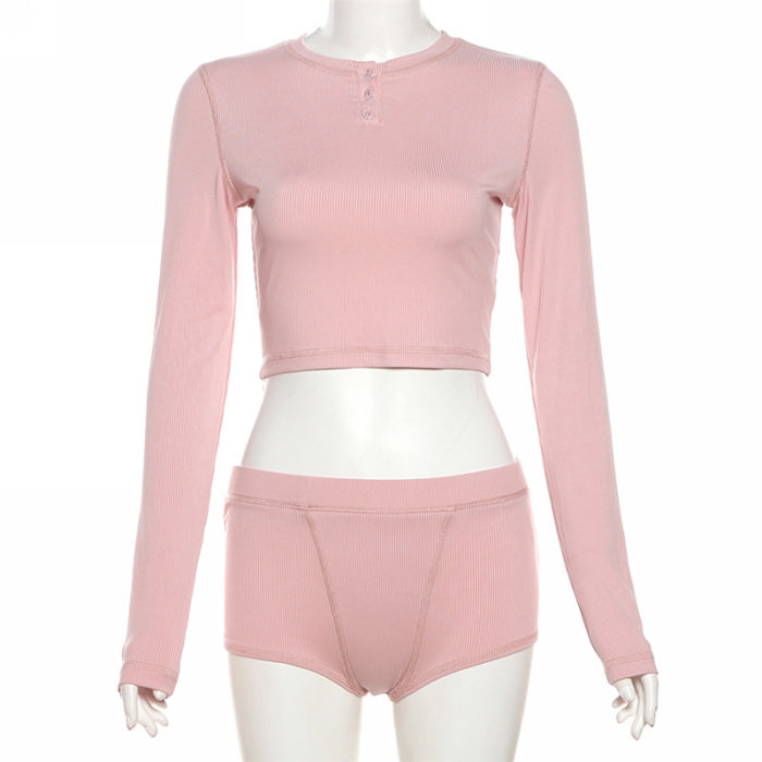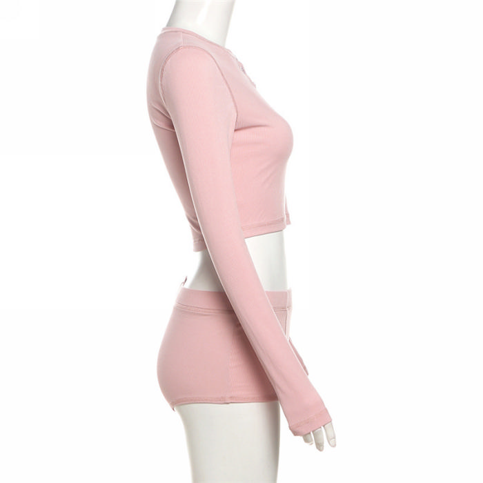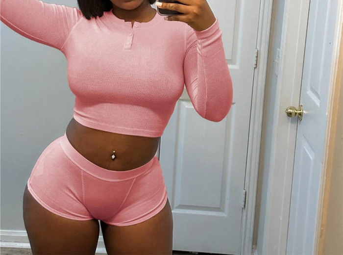 (Real Image)2024 Styles Women Summer Single-Breasted Front Cropped T-Shirt with High-Waist Hip-Wrap Shorts SetSKU: #CF77820-1