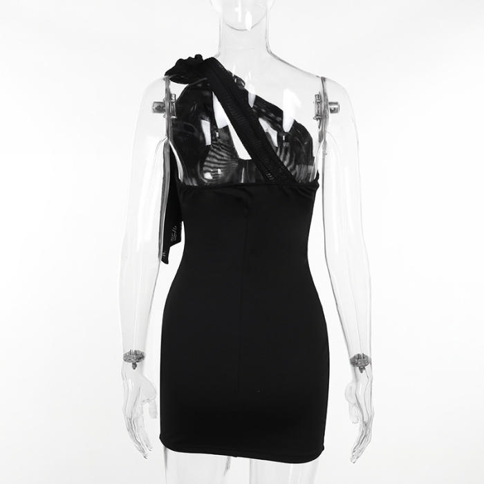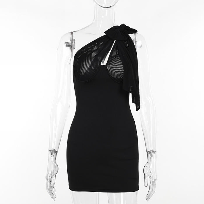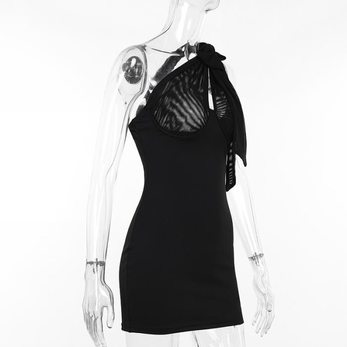 (Real Image)2024 Styles Women Summer Slim Sexy Mesh Open-Work Paneled Lace-Up DressSKU: #XF92829-1