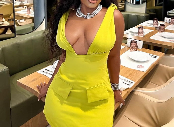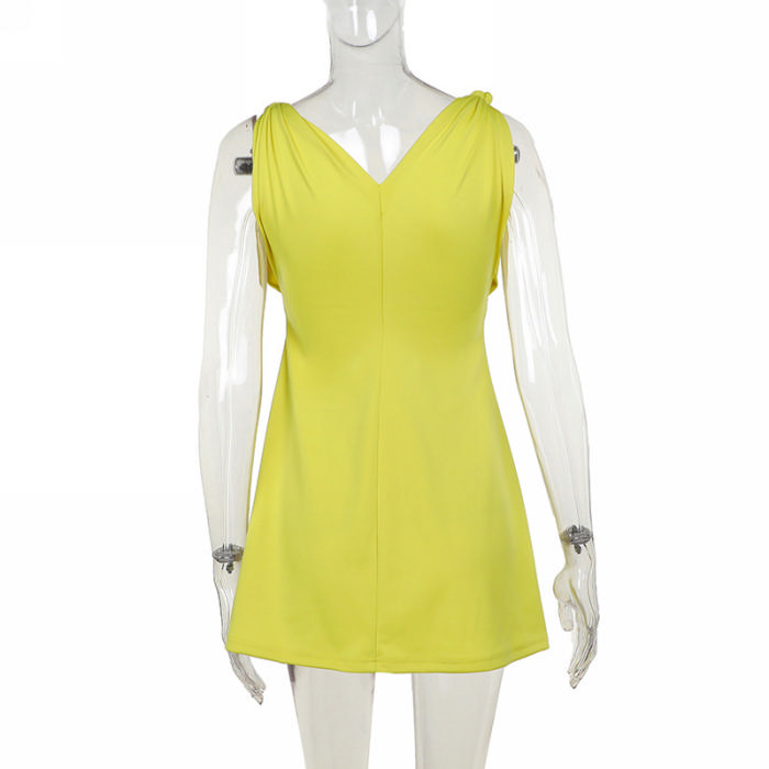 (Real Image)2024 Styles Women Summer Spicy Sexy V-Neck Faux Pocket Front Dress with Slim WaistSKU: #XF92840-1