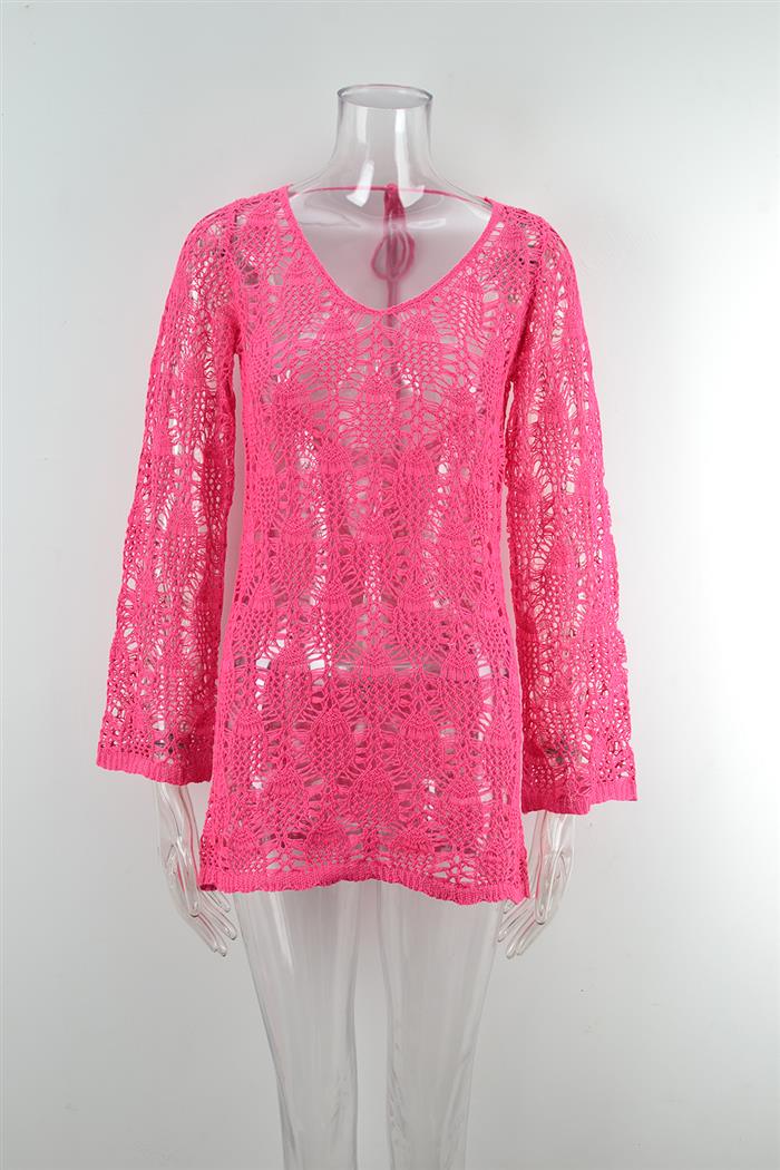 (Real Image)2024 Styles Women Summer Stitching Beach Bikini Sun Protection Clothing Plus Size Knitted Cover UpSKU: #GF01027-4