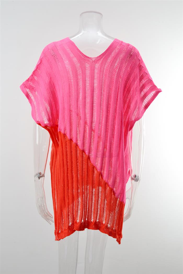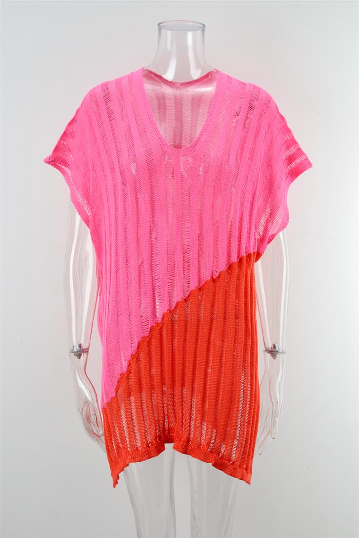 (Real Image)2024 Styles Women Summer Sun Protection Clothing Stitching Bikini Beach Cover UpSKU: #GF01005-5