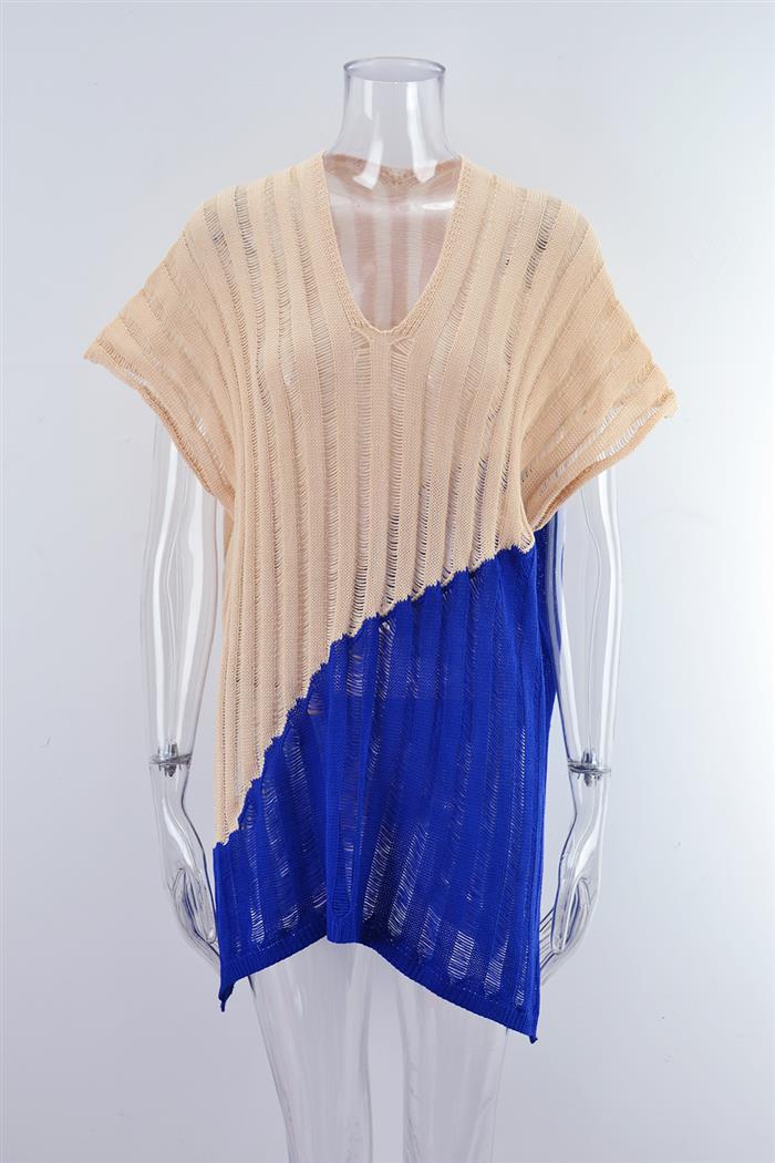(Real Image)2024 Styles Women Summer Sun Protection Clothing Stitching Bikini Beach Cover UpSKU: #GF01005-4
