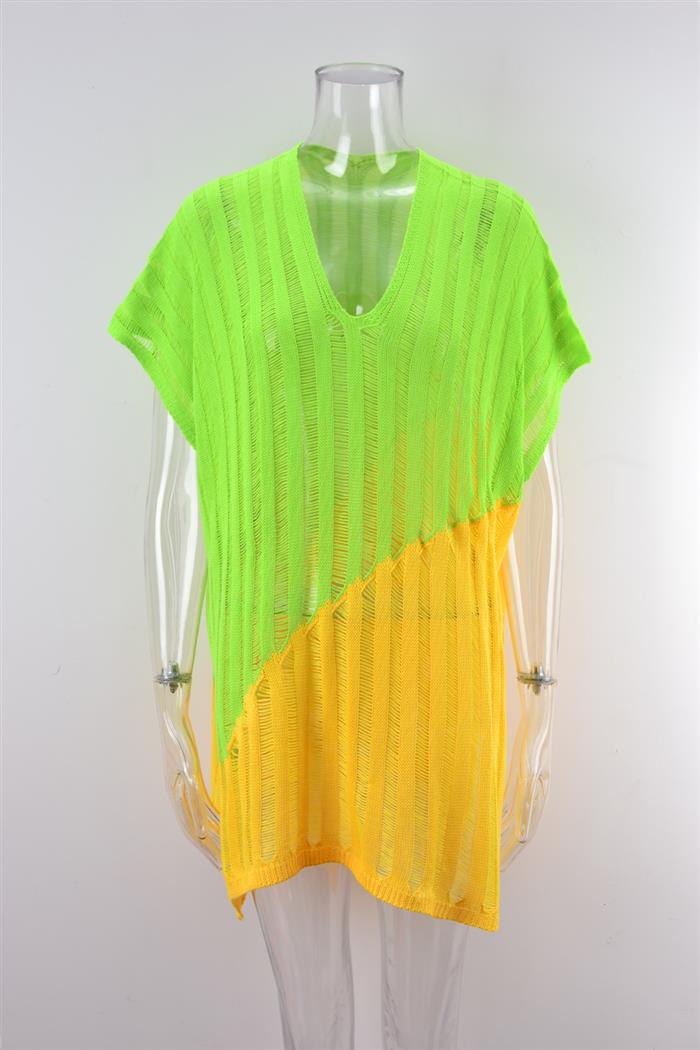 (Real Image)2024 Styles Women Summer Sun Protection Clothing Stitching Bikini Beach Cover UpSKU: #GF01005-3
