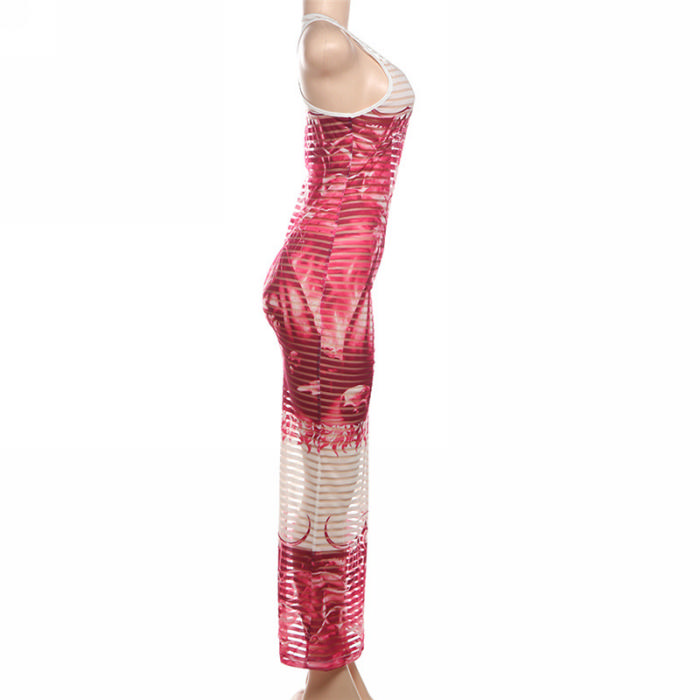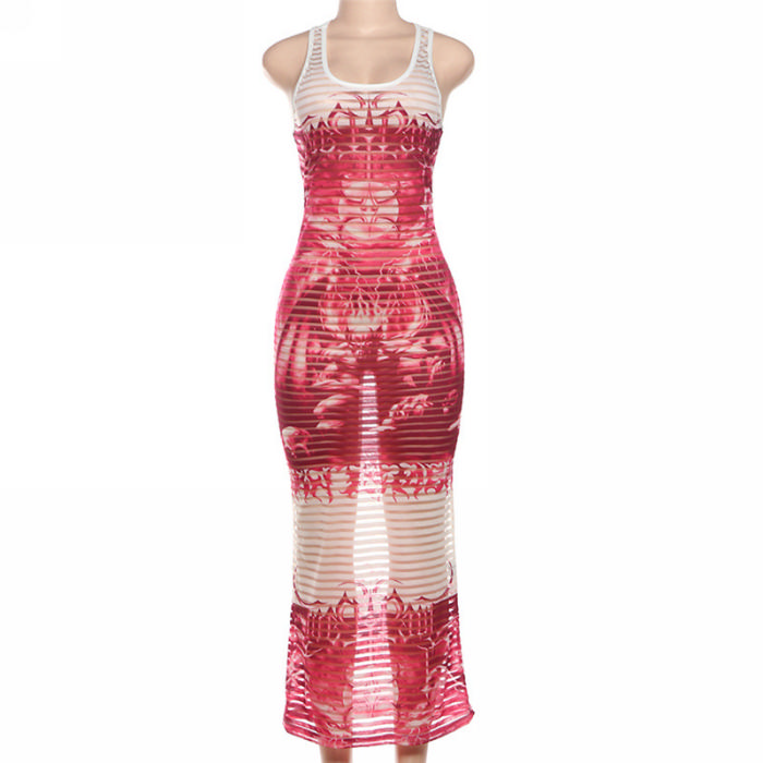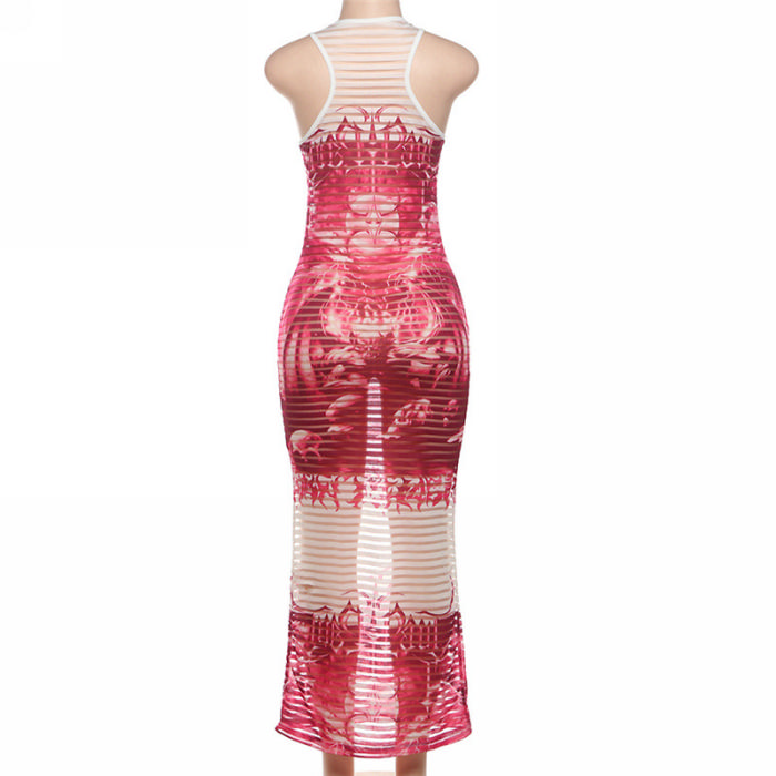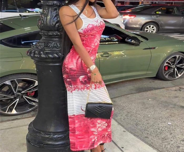 (Real Image)2024 Styles Women Summer Temperament Slim-Fit Low-Cut Digital Print Tank DressSKU: #CF77771-1