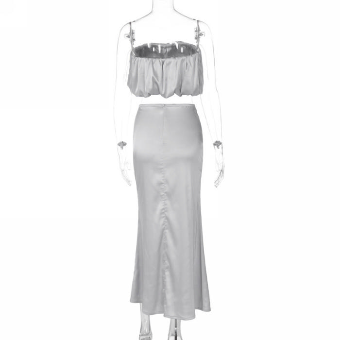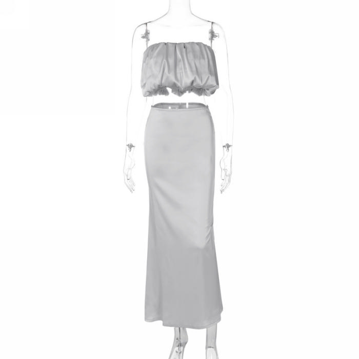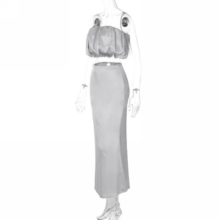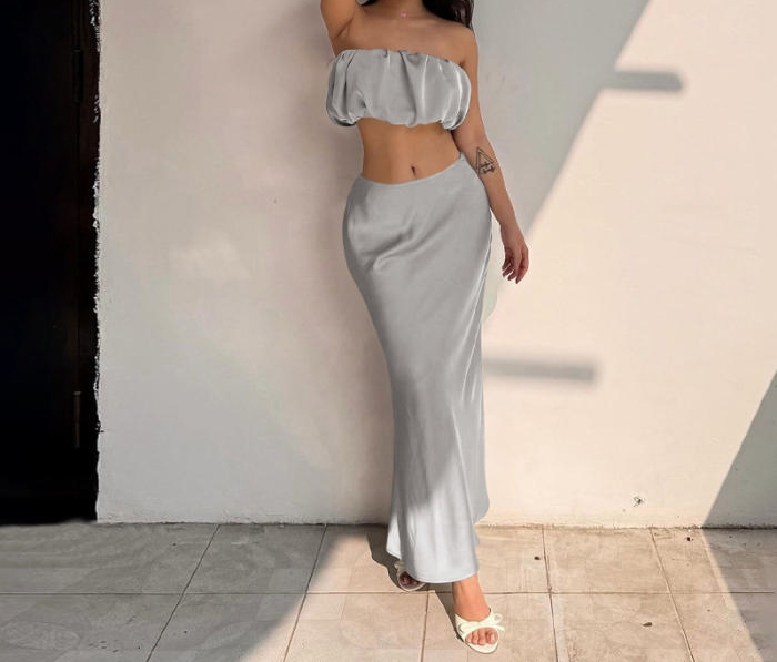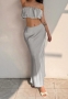 (Real Image)2024 Styles Women Summer Tweed Off-Shoulder Bustier Top and Bodycon Skirt SetSKU: #CF88205-1